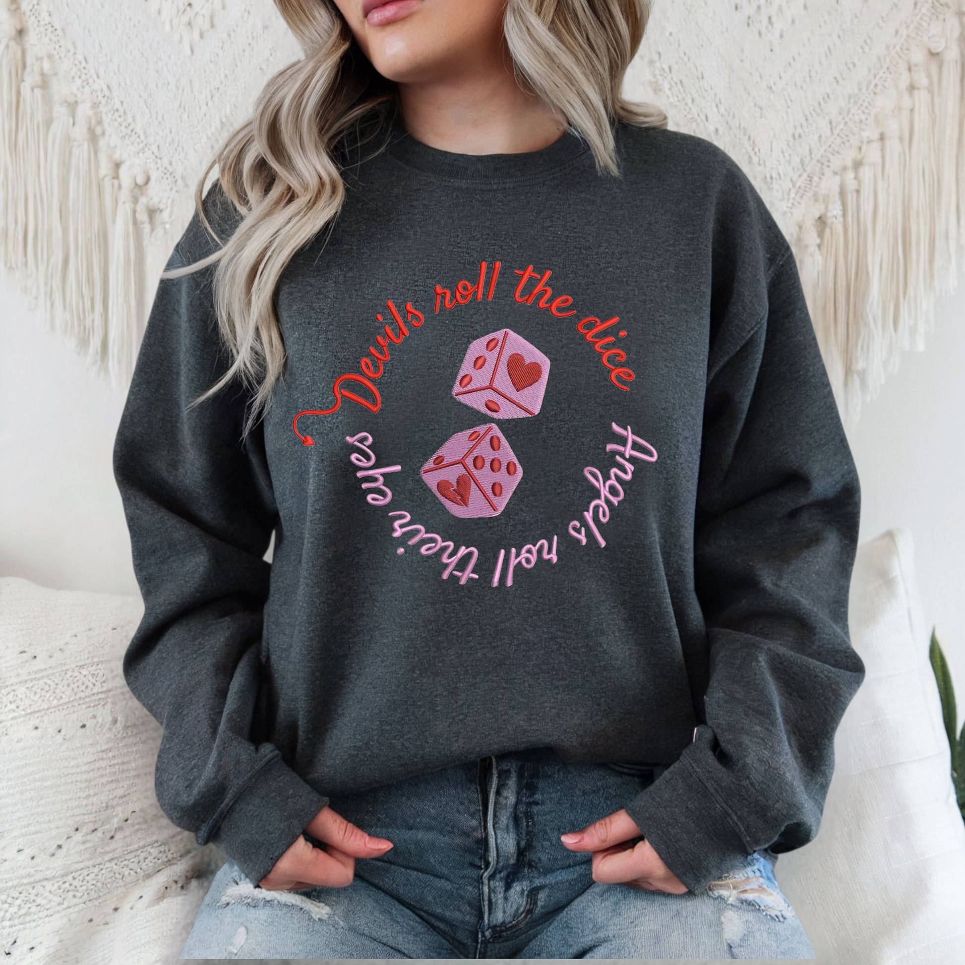 All of our embroidery is stitched using a 4x4 hoop, which means the design size stays the same across all sweatshirts. Please note that depending on the sweatshirt size you choose, the design may appear larger on smaller sizes and smaller on larger sizes.